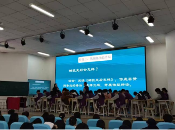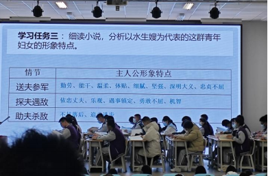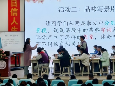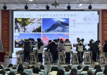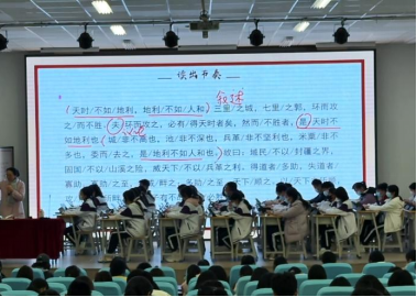 19日,郭雪梅老师以《登勃朗峰》为载体,通过旅游路线设计、旅行寄语撰写等情境化任务开展教学,同步分享班主任“四感建设”与差异化关爱策略;梁晓娟老师以“拆解谣言信封”为切入点讲授《红星照耀中国》,还原红军真实形象;陈蓉老师系统解读整本书阅读“三位一体”课程体系,提供可落地的教学路径。